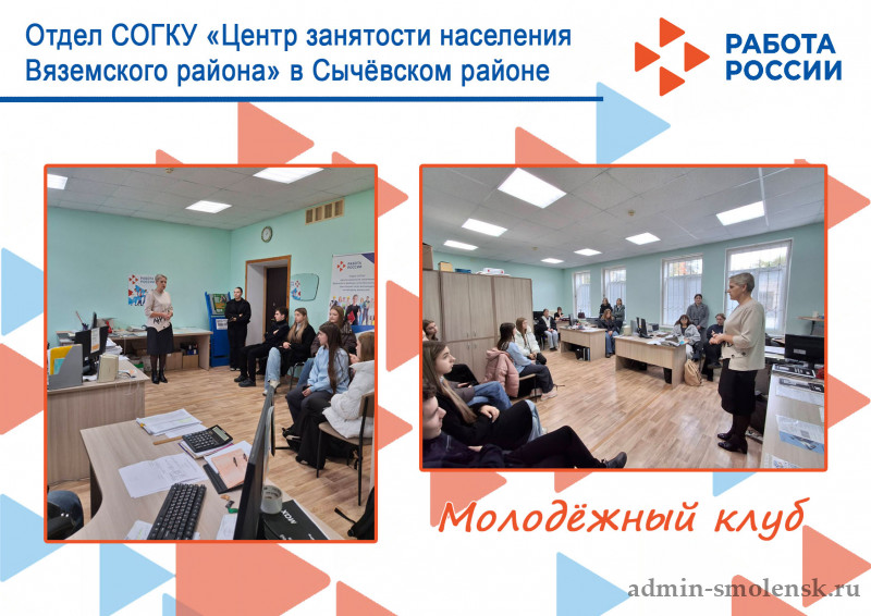 Отделом СОГКУ «ЦЗН Вяземского района» в Сычевском районе в рамках профессиональной ориентации со школьниками МБОУ СШ №1 состоялась проведение молодежного клуба «Мой выбор – первая профессия». Тема мероприятия «Все профессии нужны, все профессии важны».
